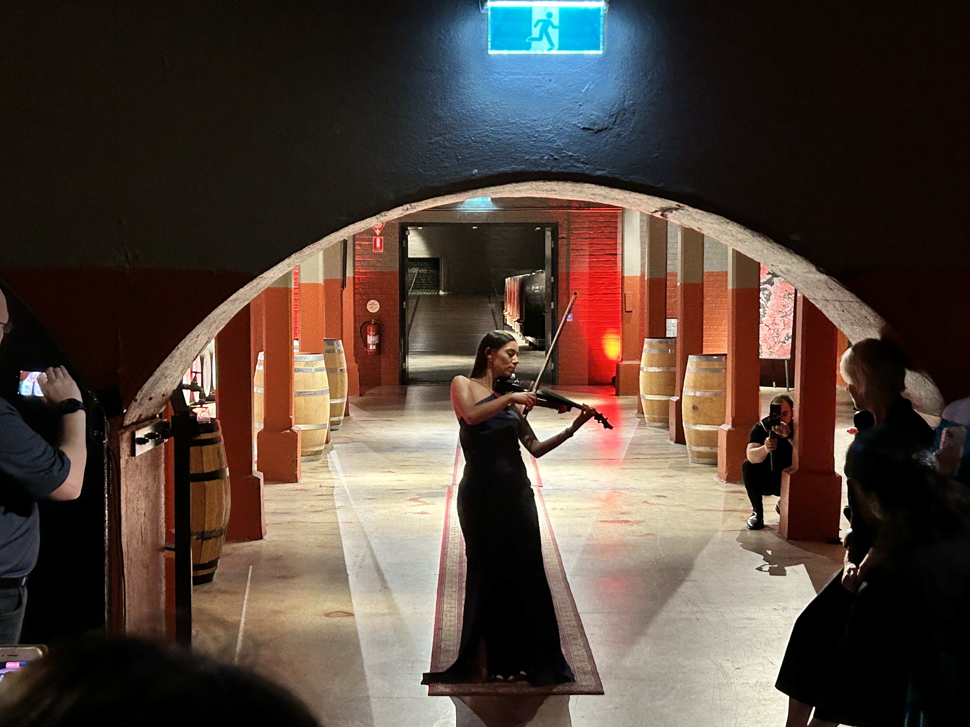 Saturday evening we were bussed to Penfold’s Magill winery, home of the famous Grange. Back in the day the winery was on the outskirts of Adelaide. Today it’s surrounded by several suburbs that extend right up to the start of the hills district. Christopher and Mary Penfold started the winery back in 1844 at the Magill Estate and today that estate is in pristine condition. After a tour of the cellars we enjoyed some wine tasting with canapés while being treated to some great music by the very talented solo violinist Cardinia, who manages to merge classical and pop with a touch of electronic.