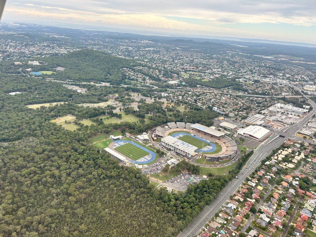 Garry obtained a clearance from YBAF tower to fly direct to Walter Taylor Bridge and we passed over ANZ Stadium, Griffith Unit and had a good view of Archerfield airport.