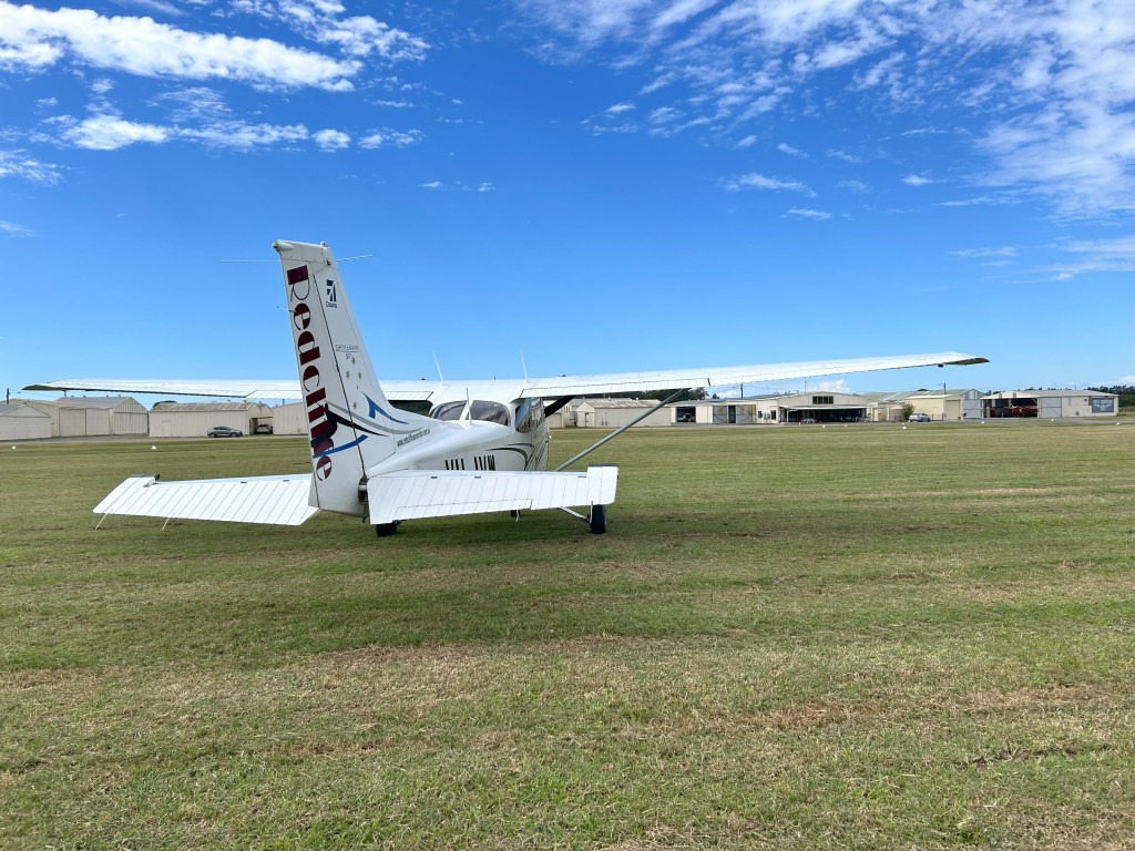 From Point Lookout we flew direct to YDUN and by the time we arrived all the other planes had landed or were on final. Joined downwind, turned base and then final and were buffeted a bit by the wind over the hills. Nevertheless it was a smoothish landing and we taxiied up to the parking area where a guide showed us where to park.
