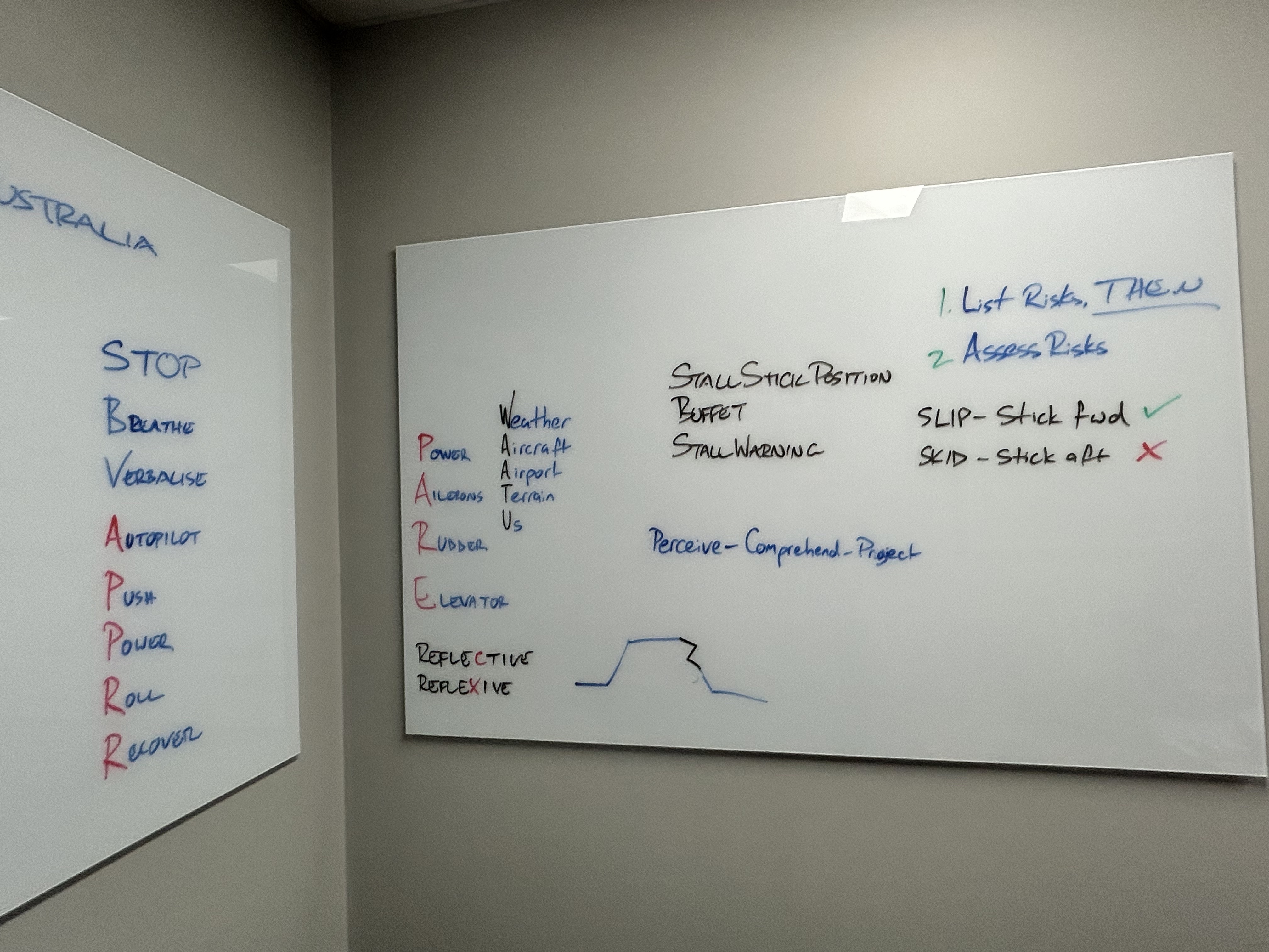 On Thursday morning I arrived at 8am again and we settled into a bit more theory about human factors and threat and error management. These subjects had been covered in my CPL training but it was covered in a better way here. The CASA syllabus is a bit strange in this area where they seem to get tangled up in semantics and I found it quite frustrating. So it was good to talk about real world threats and errors and how to deal with them without having to worry too much about the exactly what type of threat or errors (according to CASA definitions) we were talking about.