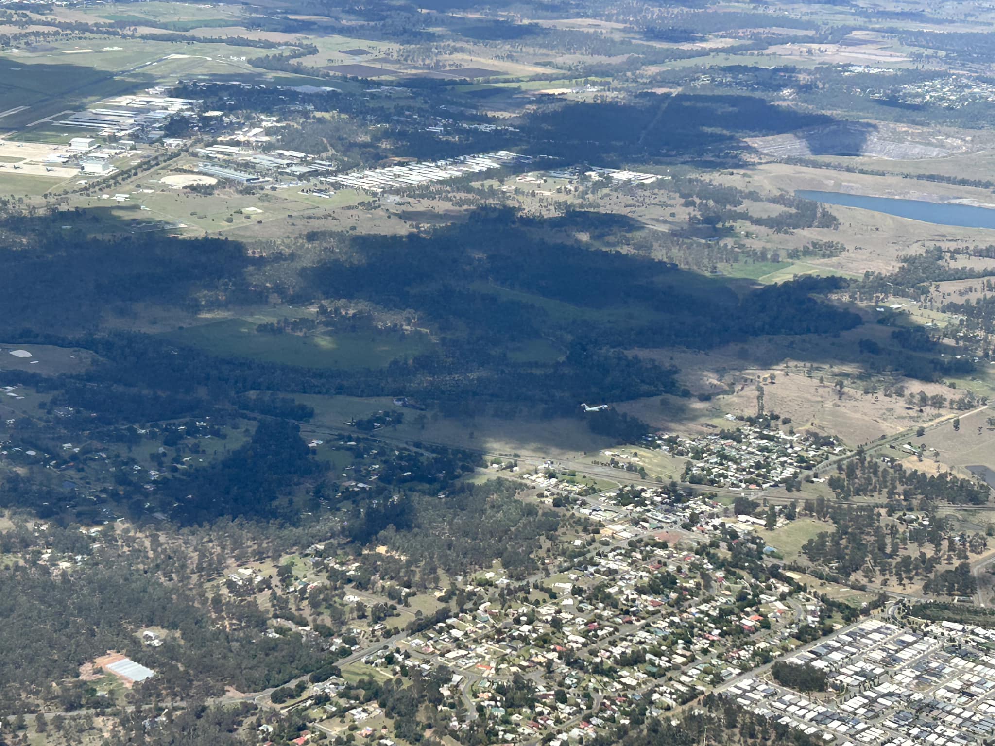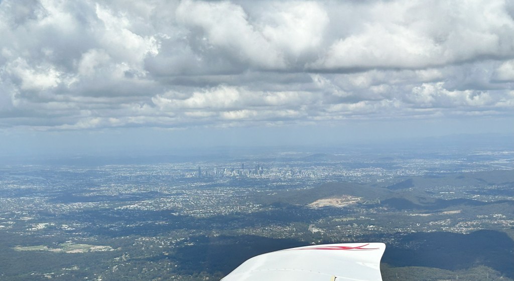 From Moree it was 90 minutes to Redcliffe, passing over miles and miles of green pastures, a new wind farm still under construction, Texas, Warwick, Cunningham’s Gap and Amberley. A C17 Globemaster was doing circuits at Amberley below us so, even though we were at 7000 feet, ATC guided us to the north of their airspace.