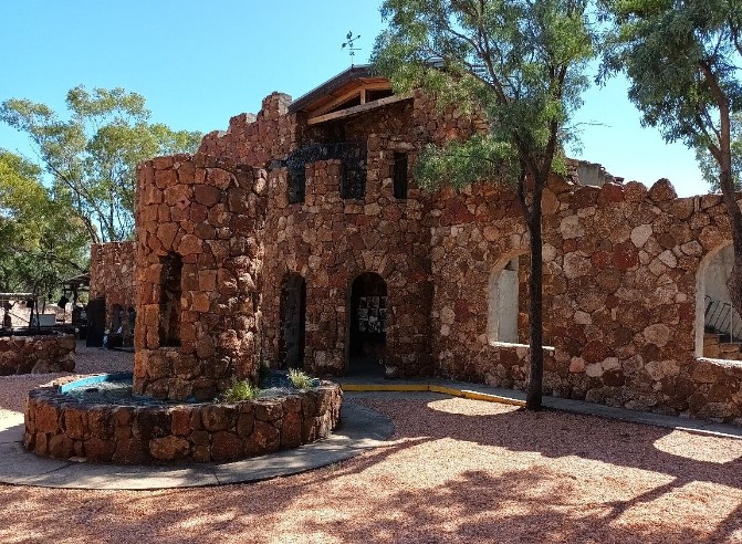 On Day 5 we were taken on a tour of the Ridge by Black Opal Tours. We visited various sites of interest around the town including a house made out of old bottles, a castle erected by an Italian immigrant nicknamed Amigo who didn’t find much opal and turned his hand to stonemasonry, a cactus garden, and an art gallery owned by John Murray, who also painted a lot of the murals around town. We also learned about ‘ratters’, ne’er-do-wells who break in and steal opal from other people’s claims and the horrible fates that they face if they’re caught.