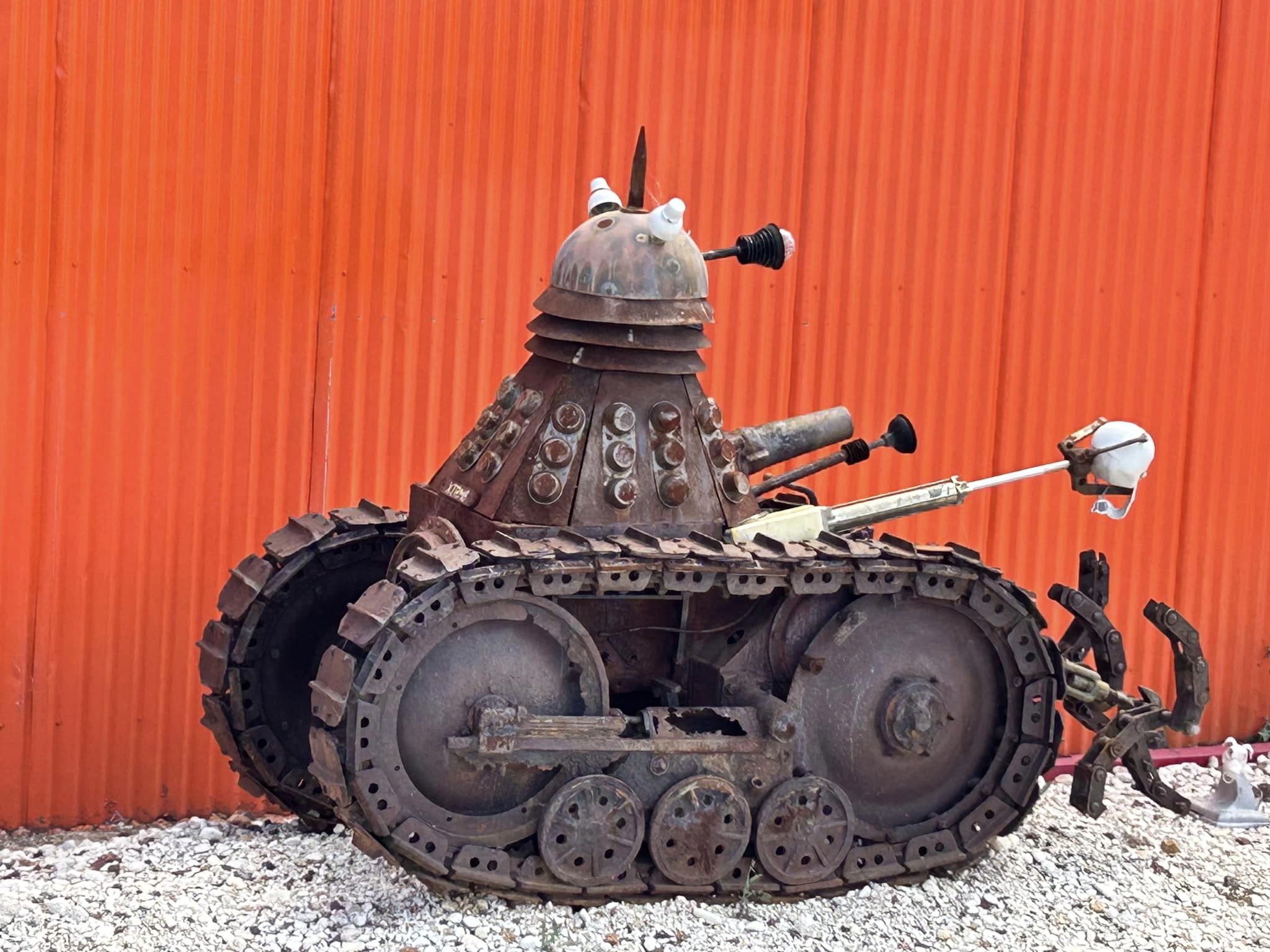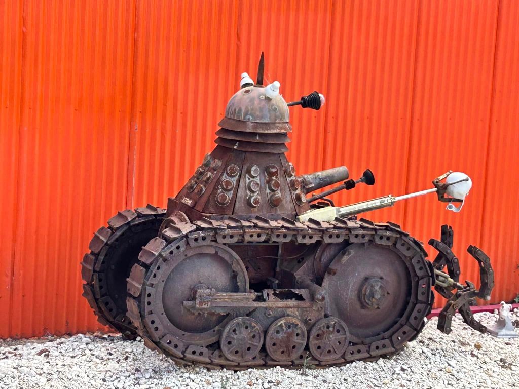 After a sandwich lunch we visited the Chambers of the Black Hand opal mine, where the owner carved 900 sculptures into the sandstone walls 12 metres underground by hand, using a single butter knife. We could then compare his artwork with a number of weird sculptures made out of scrap metal at the yet to open Puttputt place nearby.
