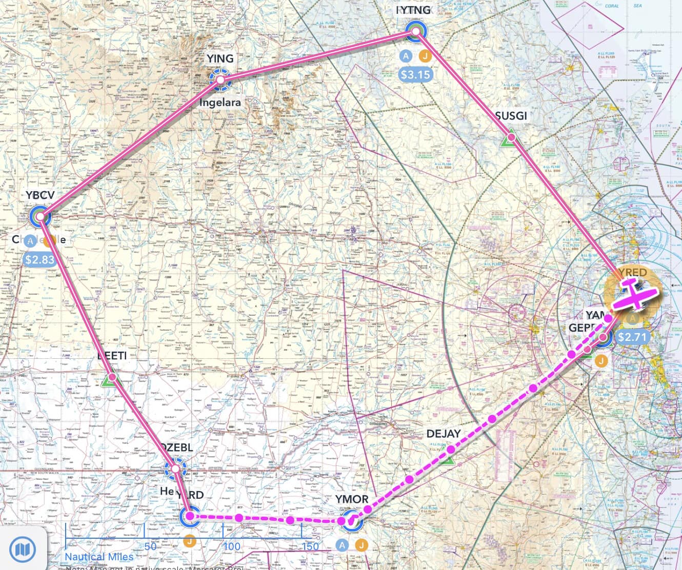 Day 6 saw us heading for home. After a quick breakfast at the Opal Street Cafe we were dropped at the airport by the Black Opals tour bus. With Sam Keenan leading the way we flew 40 minutes to Moree to top up with fuel. On the way MSF overtook RAQ, ROC and BHD. It’s really difficult to spot other aircraft, even if they’re only a couple of miles away but we managed to track them on OzRunways and AvTraffic so were able to maintain a safe distance while passing.