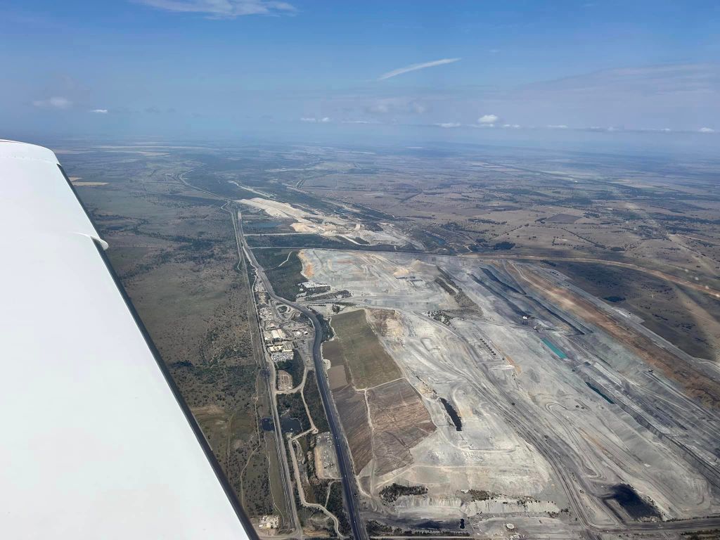After refuelling at Thangool we continued to Ingelara, a cattle property near Carnarvon, that has its own airstrip. On the way we passed over the Moura coal mine.