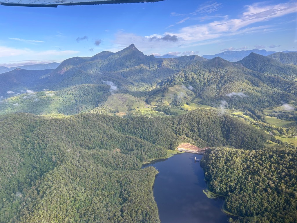 Soon we were passing over Clarrie Hall Dam heading for the Nimbin TV Towers.