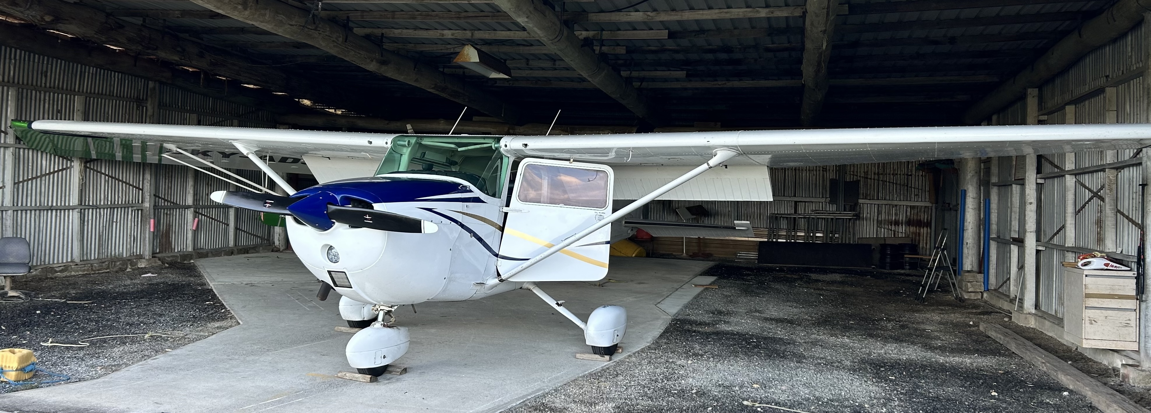 The club owns a single Cessna 172 with call sign VH-RYC that is housed in a hangar adjacent to the airstrip.