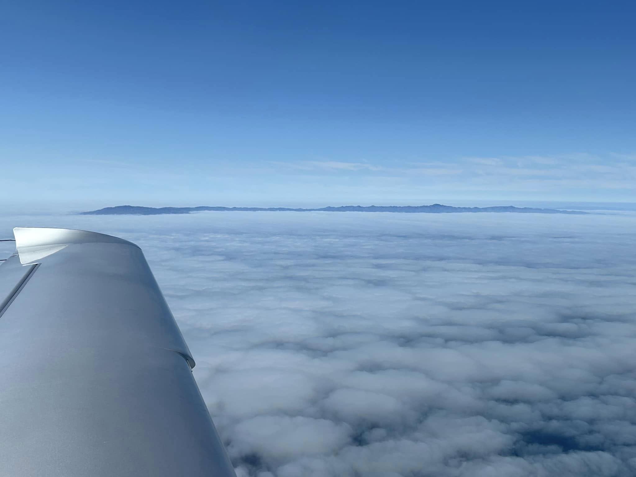 After checking out the FBO facilities I climbed into the back seat and Brett climbed into the front for the return flight. The fog had cleared by that time so we had good views, for example of Santa Maria below.