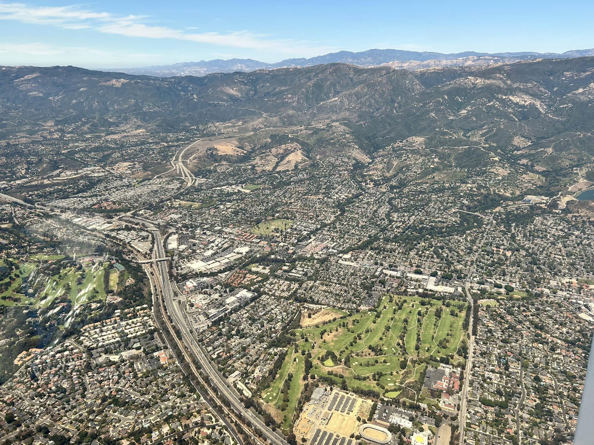 On Thursday 1st August 2024, after two days flying in the mountains out of Denver and two days flying out of Milwaukee, I had my fifth day of flight training in the US. Brett Silvester and I flew an SR20 along the coast of California accompanied by an instructor. We’d scheduled a one-day stopover in LA on our way back to Brisbane and, given how easy it’d been to arrange a flight with Pilotsmith at Milwaukee the previous week, we decided to attempt something similar in LA. At first, I’d thought of arranging a flight in a High Wing Sling, as I’d been impressed with the one I’d seen in Oshkosh, and they have a training school in LA. However, there wouldn’t be a high wing available that week, and Brett was keen to fly a Cirrus again, so I hunted around on the internet for a Cirrus flight school instead. I found Calair, who are based at Hawthorne airport, only about 10 minutes by taxi from LAX and when I emailed them they said there’d be no problem arranging a flight with an instructor that day. So we were set.