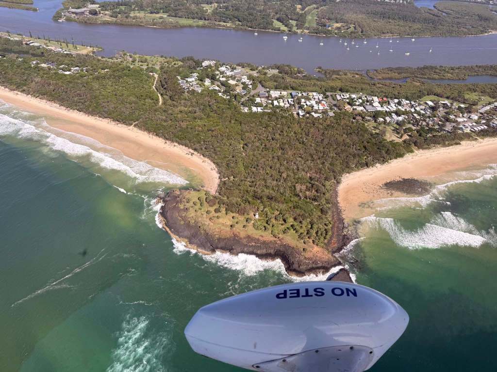 It was a perfect blue-sky day as we flew coastal at 2500ft so we had amazing views of the beaches and river mouths and inlets, heading first past Byron Bay for Ballina.