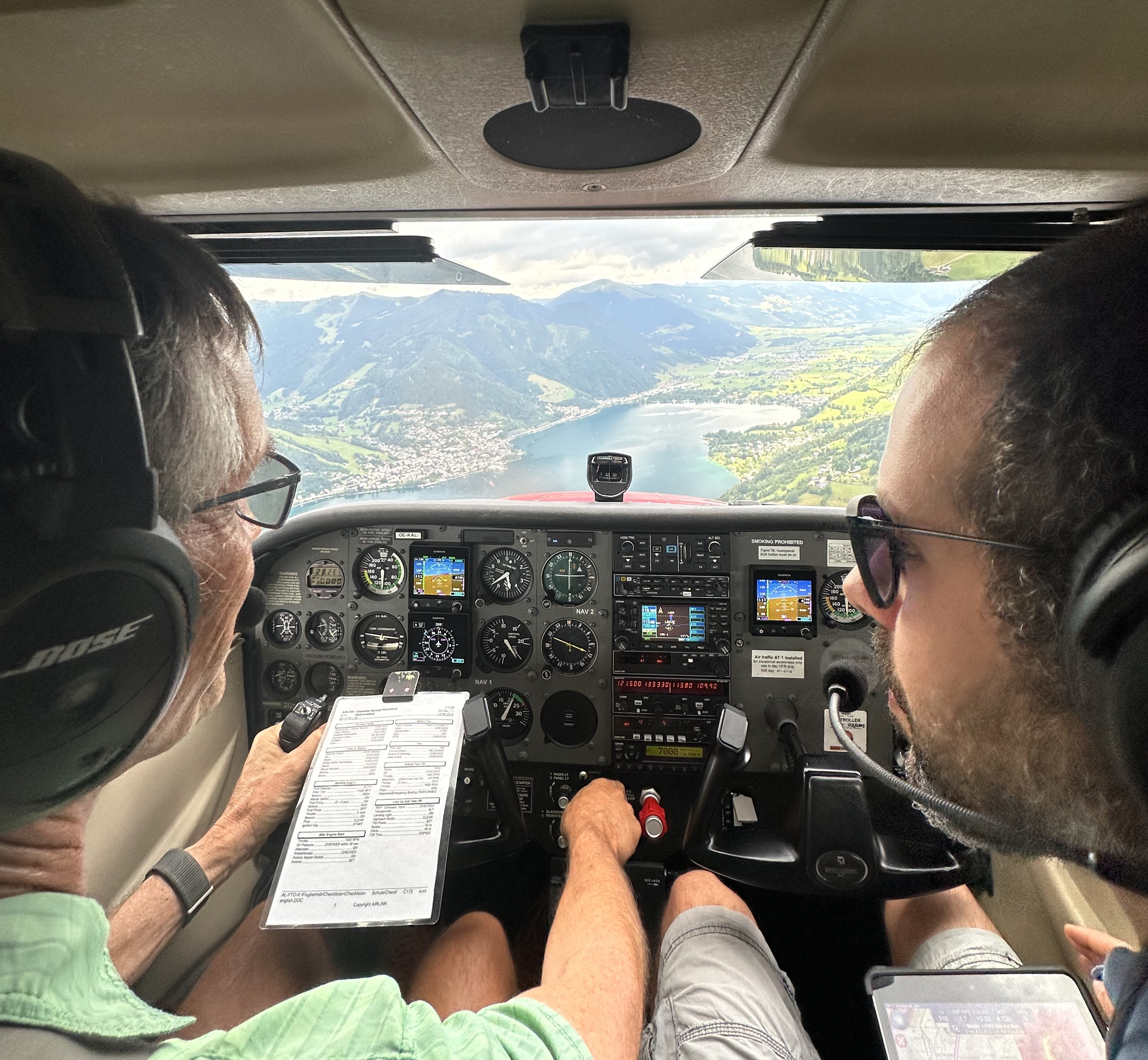 Just as I thought we would have to turn to avoid the mountains ahead he told us to turn base and we followed three other planes in on final. It turned out that the controller had been one of Matt’s students in the past and Matt congratulated him on a job well done after we’d landed.